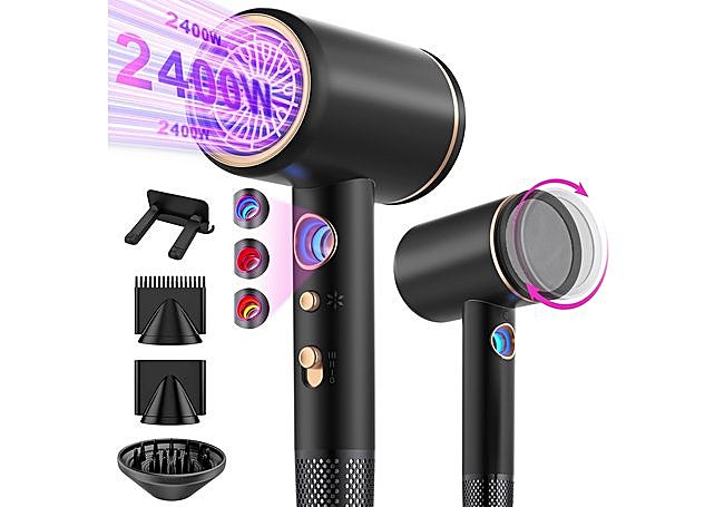 Su motor de alta velocidad genera un flujo de aire potente de hasta 20 m/s, permitiendo un secado rápido sin dañar el cabello. El sensor inteligente ajusta la temperatura, alternando entre aire caliente y frío para proteger puntas y cuero cabelludo. Su diseño compacto y acabado metálico facilitan el manejo, siendo ideal para uso diario o viajes.