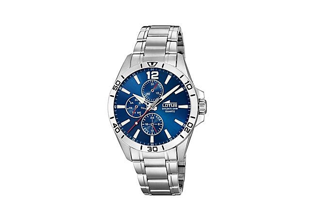 ¿Buscas un reloj que combine elegancia y funcionalidad? El Lotus Multifunción para hombre destaca por su caja y correa de acero inoxidable plateado, que le otorgan un aspecto sofisticado y resistente. Su esfera azul de cristal mineral añade distinción, y la resistencia al agua de hasta 5 ATM permite usarlo sin preocupaciones en cualquier ocasión. Ofrece funciones multifunción en formato analógico, facilitando la organización diaria.