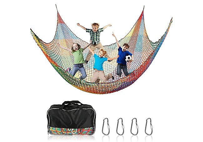 Ofrece un entorno seguro para trepar, sentarse o incluso tumbarse, facilitando el desarrollo de habilidades motoras y el equilibrio. Gracias a su versatilidad, puede instalarse en diferentes espacios exteriores y emplearse como hamaca, puente colgante o complemento de casas de árbol, adaptándose a las necesidades de cada familia.
