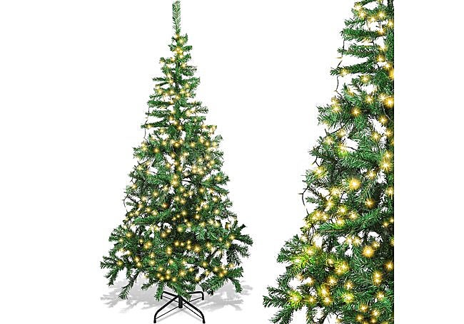 Con un acabado nevado y 300 luces LED blancas cálidas, este árbol de Navidad artificial de 180 cm destaca por su aspecto realista y su montaje rápido. Las ramas densas de PVC mantienen la forma y el color temporada tras temporada, mientras que la base metálica garantiza estabilidad. El resultado es una decoración luminosa y duradera con presencia elegante.