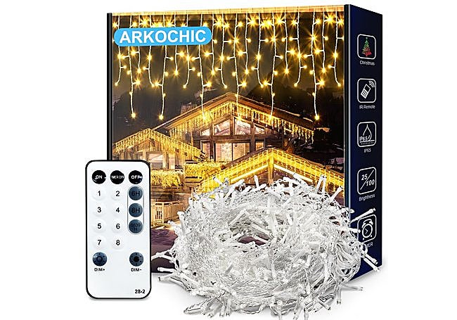 Con una longitud de 30 metros y 960 LED, la cortina luminosa ARKOCHIC destaca por su intensidad regulable, ocho modos de iluminación y temporizador integrado. Su certificación IP65 asegura resistencia a la intemperie, mientras el cable transparente y el enchufe ampliable aportan versatilidad y facilidad de instalación para decoraciones exteriores con efecto visual uniforme y brillante.