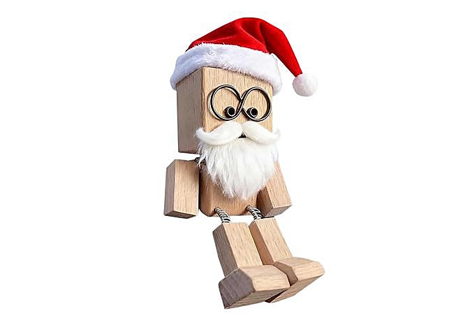 Con acabado artesanal, esta figura decorativa de madera presenta un diseño de Papá Noel con piernas móviles que aportan movimiento y un toque lúdico. Fabricada en madera resistente, mantiene su aspecto festivo a lo largo del tiempo. Su tamaño compacto y detalles cuidados convierten esta pieza en un adorno navideño atractivo y duradero para cualquier ambiente.