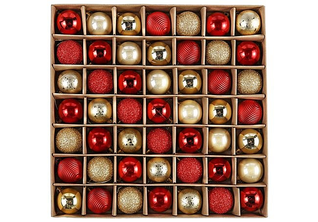 Presenta una cuidada selección de bolas navideñas en tonos rojo y dorado, fabricadas en plástico resistente y con diámetros entre 4 y 6 cm. El juego de 40 piezas ofrece acabados mate, brillante y texturizado, aportando variedad visual y durabilidad. Incluye ganchos para colgar fácilmente, creando una decoración festiva y llamativa en cualquier árbol de Navidad.