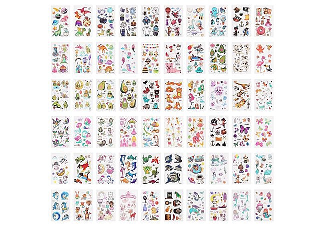 Con una presentación colorida, el set de tatuajes temporales de ACWOO reúne 60 hojas con diseños de dibujos animados que captan la atención de los más pequeños. Cada tatuaje resulta fácil de aplicar y retirar, permitiendo que los niños disfruten de una experiencia divertida y segura en cualquier fiesta o celebración.