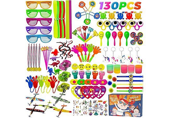 Con una selección de 130 piezas, este set de Withosent reúne pequeños juguetes de fiesta en colores vivos y materiales seguros. Incluye desde aviones planeadores y peonzas hasta gafas de fiesta y pegatinas, todo pensado para sorprender a los niños y mantenerlos entretenidos durante cualquier celebración infantil.