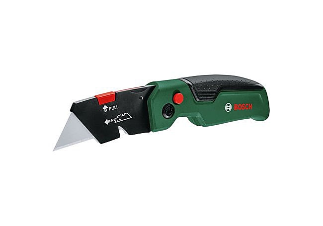 Gracias a su diseño compacto, el cúter plegable de Bosch destaca por su estructura robusta y ligera, fabricada en acero inoxidable y nailon con fibra de vidrio.