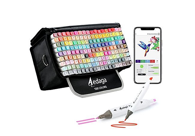 Gracias a su innovador soporte y la aplicación gratuita AedagaColor, este set de marcadores de alcohol AEDAGA lleva la creatividad a otro nivel. El estuche incluye 168 colores vivos y una bolsa que facilita la organización, permitiendo tener cada tono siempre a mano, en casa, aula o estudio.