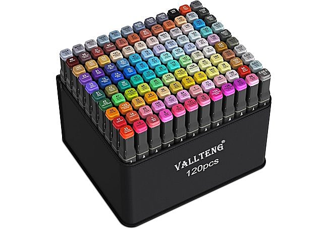 Si buscas una paleta cromática versátil, los marcadores Vallteng de 120 colores transforman cualquier boceto en una experiencia creativa sin límites. El diseño de doble punta, con un extremo fino para detalles y otro biselado para rellenos, permite alternar entre precisión y expresividad sin esfuerzo.