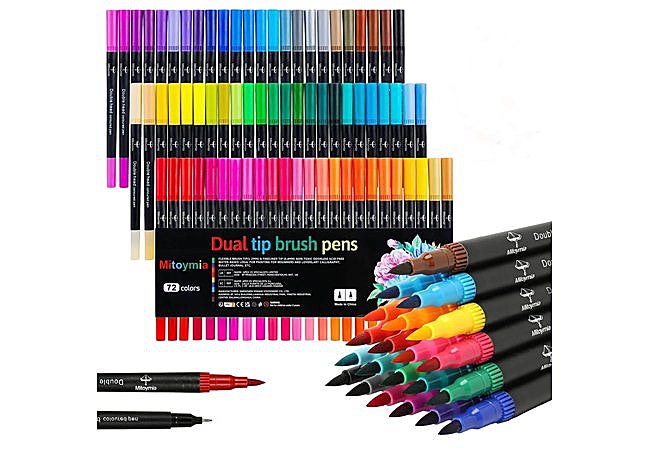 Diseñado para quienes buscan libertad creativa, el set de 72 rotuladores lettering de Mitoymia invita a explorar el color sin límites. Su punta fina y pincel flexible permite desde líneas delicadas hasta sombreados fluidos, adaptándose a caligrafía, dibujo artístico o decoración de tarjetas.