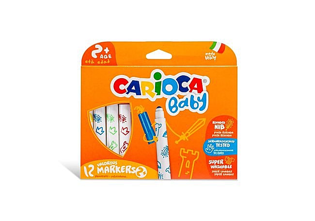 Si buscas una opción segura y divertida para los más pequeños, los rotuladores Carioca Baby acompañan los primeros pasos creativos desde los dos años. Su formato robusto y punta redondeada y bloqueada garantizan una experiencia cómoda y sin riesgos. La tinta superlavable se elimina fácilmente de la piel y la ropa solo con agua, facilitando la tranquilidad en casa o en el aula.