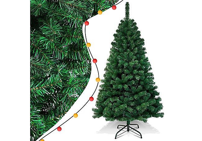 Con estructura plegable y 900 ramas de PVC, este árbol de Navidad artificial de 210 cm destaca por su diseño resistente y materiales ignífugos. El soporte metálico proporciona estabilidad y la instalación se realiza en pocos pasos. Su acabado verde realista aporta presencia y durabilidad, permitiendo una decoración navideña vistosa y reutilizable año tras año.