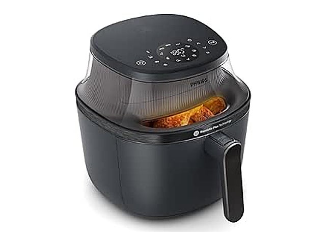 Seguimos con la marca Philips ahora con una airfryer de tamaño compacto, para que cocines con hasta un 90% de grasa. Tiene una capacidad de 6.2 litros, 16 funciones y un precio de 119,99€ por su descuento del 20%.