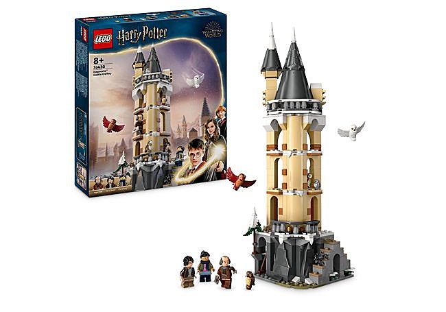 Con estructura modular y detalles realistas, la Lechucería del Castillo de Hogwarts LEGO Harry Potter incluye una torre con alféizares para cinco lechuzas, minifiguras de Harry, Cho Chang y Argus Filch, y un cuadro coleccionable. El set destaca por su diseño fiel al universo mágico y accesorios para el cuidado de las aves.