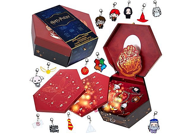 Los calendarios de adviento de Harry Potter contienen sorpresas diarias relacionadas con el universo mágico. Cada calendario incluye una ventana diaria con un artículo sorpresa, como figuras, maquetas para construir, joyas, papelería temática o accesorios inspirados en Hogwarts y otros elementos de la saga. Existen modelos que incorporan maquetas de madera o miniconstrucciones de lugares icónicos, así como opciones que ofrecen accesorios prácticos, piezas de bisutería o artículos de uso cotidiano, todos con licencia oficial de Harry Potter.