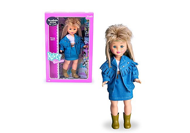 Nancy Colección Jean's es una muñeca de edición limitada de 42 cm de altura. Incluye un conjunto vaquero compuesto por cazadora ancha de flecos, mini falda y top blanco. Cada unidad incorpora certificado de autenticidad y numeración. Esta edición limitada destaca por sus detalles en el vestuario y la presentación exclusiva para coleccionistas.