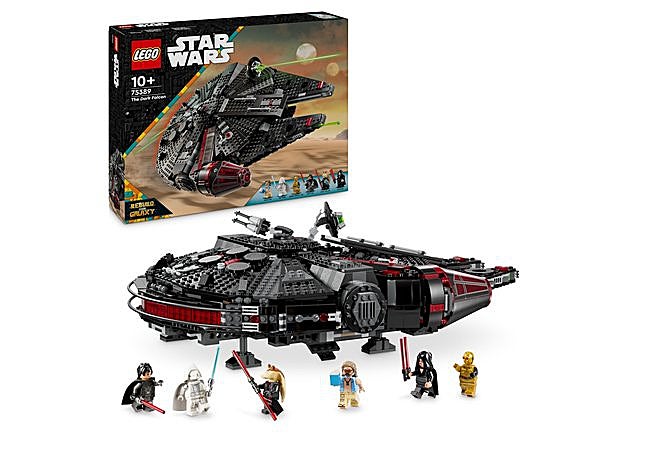 Con una estructura detallada y paneles móviles, la maqueta Halcón Oscuro de LEGO Star Wars presenta cabina desmontable, cañones automáticos y giratorios, y un interior accesible con zonas temáticas. Incluye seis minifiguras exclusivas, así como diversos detalles y accesorios inspirados en la saga.