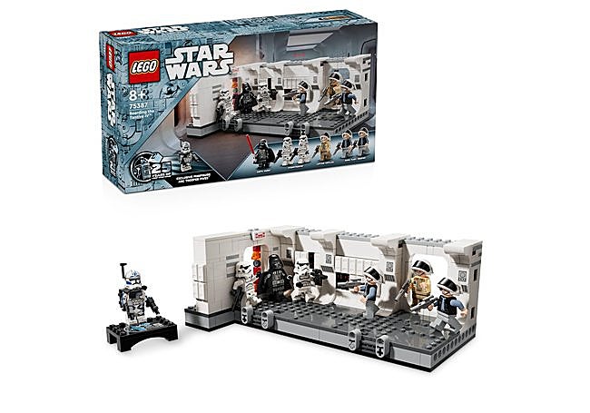 El set LEGO Star Wars 75387 incluye un modelo del corredor de la Tantive IV con una función de explosión interactiva y siete minifiguras, como Darth Vader y el soldado ARC Cincos. Es compatible con otros sets LEGO, permitiendo combinaciones con modelos LEGO Star Wars.