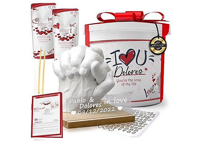 Con un kit completo de materiales, la escultura de manos Lalfof permite crear un molde realista y personalizarlo con nombres y fecha en una base de madera. El alginato dermatológicamente probado garantiza seguridad, mientras que el acabado resalta detalles como arrugas y anillos. Incluye instrucciones multilingües y adhesivos para personalización, convirtiendo recuerdos en una pieza artística tangible.
