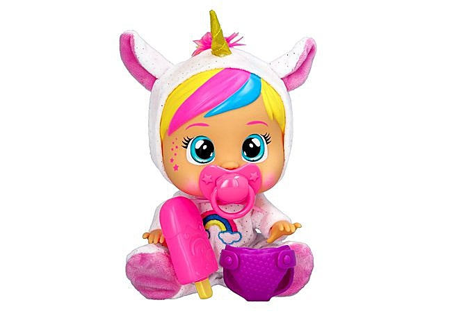 La muñeca interactiva Loving Care Fantasy Dreamy de Cry Babies llora lágrimas reales al presionar su cabeza. Incluye un pijama intercambiable y accesorios como chupete y helado. Está diseñada para fomentar habilidades de cuidado y juego imaginativo, permitiendo a los niños crear historias y situaciones que estimulan su creatividad.