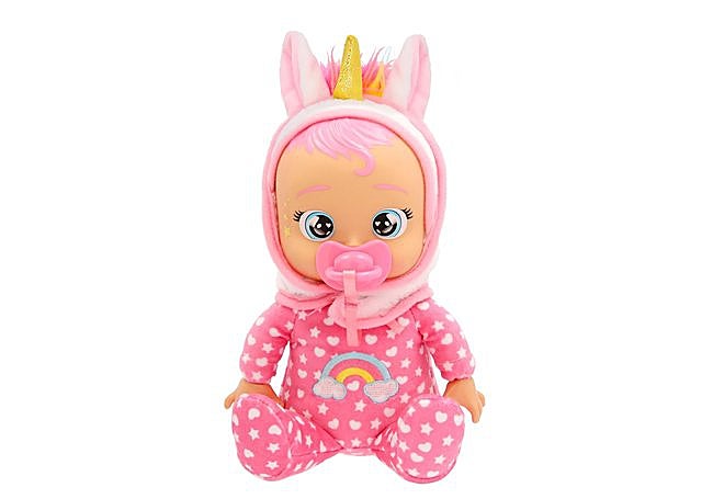 Presenta un diseño de peluche blando que permite sentarse de forma estable. La muñeca Bebés Llorones Tiny Cuddles Newborn Dreamy incorpora un pijama de recién nacida, mantita personalizada y chupete a juego. Al añadir agua y presionar la cabeza, llora lágrimas reales, aportando realismo y ternura a la experiencia de juego en formato compacto y ligero.