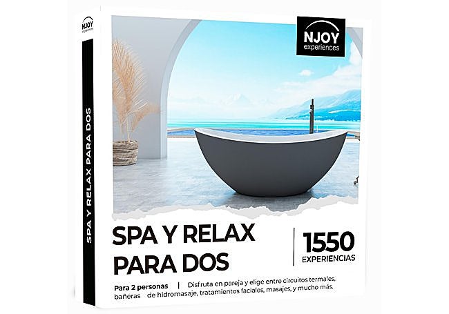 La caja regalo NJOY Experiences incluye acceso a más de 500 actividades de bienestar para dos personas, tiene una validez de 18 meses y permite cambios gratuitos e ilimitados. Incluye una tarjeta con código de activación para gestionar la reserva. Las actividades disponibles incluyen masajes, circuitos de spa y tratamientos exclusivos.