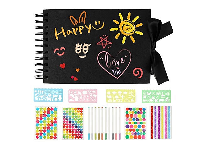 Con su diseño elegante y opciones de personalización, el álbum de fotos Talifoca permite crear un recuerdo único y duradero. Cuenta con 80 páginas negras de papel kraft, ideales para pegar fotos y escribir mensajes. La cubierta de cartón rígido y el lazo decorativo aportan un toque sofisticado, mientras que los rotuladores de colores y plantillas incluidas convierten cada página en una pequeña obra de arte.