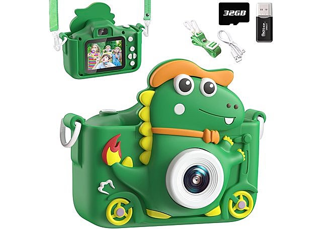 ¿Te imaginas la cara de sorpresa al regalar la cámara infantil con diseño de dinosaurio de Aissom? Este dispositivo invita a los niños a explorar el mundo desde su perspectiva, capturando imágenes y vídeos en alta definición con su doble lente de 20 megapíxeles y grabación 1080p. La pantalla de dos pulgadas es cómoda para manos pequeñas y su carcasa de silicona protege la cámara de caídas.