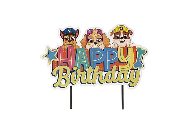 Con un diseño alegre y colorido, el topper de dekora para tartas de cumpleaños destaca por su formato en papel resistente y medidas generosas de 17,5 x 15 cm. Este adorno, pensado para celebraciones infantiles, incorpora la temática de la Patrulla Canina, aportando un toque especial a cualquier pastel o bizcocho.