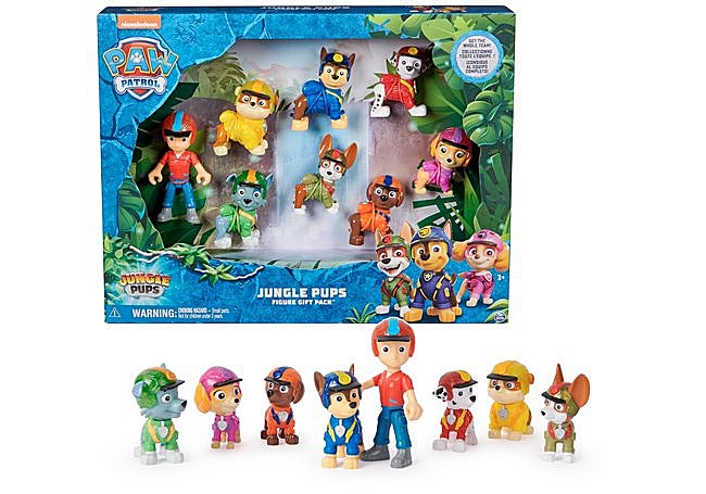 Con un diseño que recrea la emoción de la jungla, el pack Jungle PUPS de Paw Patrol reúne ocho figuras coleccionables, entre ellas Ryder y los cachorros más populares. Cada personaje luce su uniforme temático, con detalles y colores que evocan las aventuras de la serie.