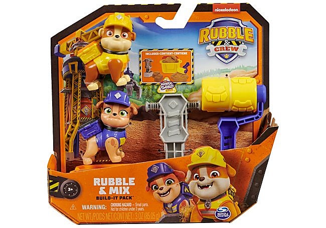 Con la combinación de figuras y arena mágica, este set Rubble & Crew ofrece una experiencia de juego diferente para los pequeños fans de la Patrulla Canina. Incluye figuras de Rubble y Mix, herramientas de construcción y 85 gramos de Kinetic Sand, todo en un formato compacto y fácil de manipular.