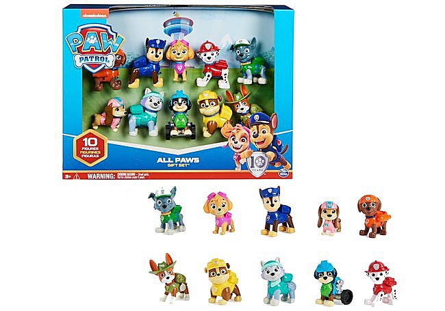 Con motivo del décimo aniversario de la serie, este pack de figuras coleccionables de la Patrulla Canina reúne a los diez cachorros más queridos junto a sus uniformes originales. El formato multipack permite tener a Chase, Marshall, Skye y el resto del equipo en una sola caja, con detalles que reproducen fielmente a los personajes.