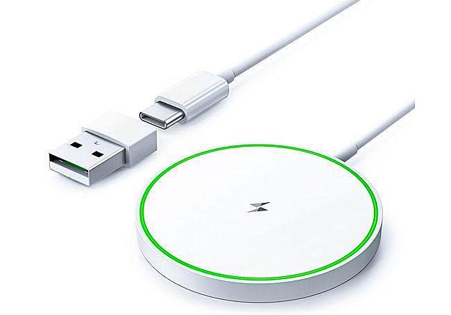 Gracias a su compacto diseño magnético, el cargador inalámbrico AMSKY ofrece una solución elegante para quienes desean cargar su iPhone o AirPods sin esfuerzo. El sistema de alineación automática garantiza que el dispositivo quede perfectamente colocado, permitiendo aprovechar la carga rápida de hasta 15W sin perder eficiencia.
