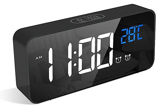 Uno de los puntos más destacados es la doble alarma independiente, que ofrece flexibilidad para parejas o personas con rutinas variables, superando a los modelos que solo permiten una alarma. El despertador también incluye 10 tonos de alarma y control de volumen ajustable (90-120dB), lo que facilita encontrar la configuración ideal para cada usuario. La función de activación por sonido es especialmente útil para quienes desean consultar la hora durante la noche sin necesidad de buscar botones, ya que la pantalla se ilumina al detectar ruidos superiores a 90dB.