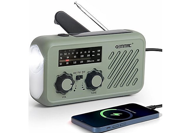 Si buscas una radio compacta y resistente para emergencias, la Gemmac ofrece cobertura AM, FM y SW en un formato portátil. Su batería recargable de 2000 mAh y las opciones de carga por USB, manivela o energía solar garantizan funcionamiento incluso sin electricidad. Además, la linterna LED y la lámpara de lectura proporcionan luz fiable en situaciones críticas.