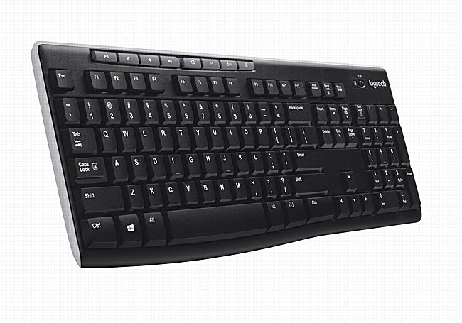 El teclado inalámbrico Logitech K270 es ideal para quienes buscan simplicidad y eficiencia. Con un diseño de tamaño completo, ofrece una experiencia de escritura cómoda gracias a sus teclas cóncavas. Su conexión inalámbrica de 2,4 GHz permite un uso sin interrupciones hasta a 10 metros.