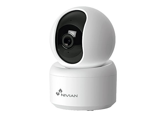 La cámara PTZ de NIVIAN ofrece resolución Half4K, rotación 360° y visión nocturna en color hasta 10 metros, brindando imágenes nítidas de día y de noche. Su diseño resistente al agua la hace ideal para exteriores e interiores.