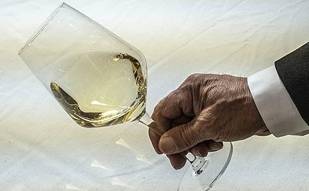 Toda prueba arranca con el análisis visual del color sobre un paño blanco, que en la muestra era amarillo paja con tonos verdosos. En estos vinos la paleta cromática va del amarillo pálido de los jóvenes al oro viejo de los añejos.