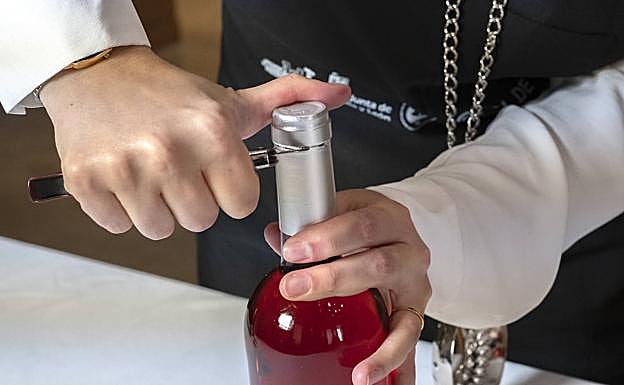 Además de asegurarnos de que el tapón está intacto, es bueno proceder de nuevo a repasar la parte alta de la botella con el paño para garantizar que no queda ninguna partícula de silicona, según apuntaron los sumilleres.