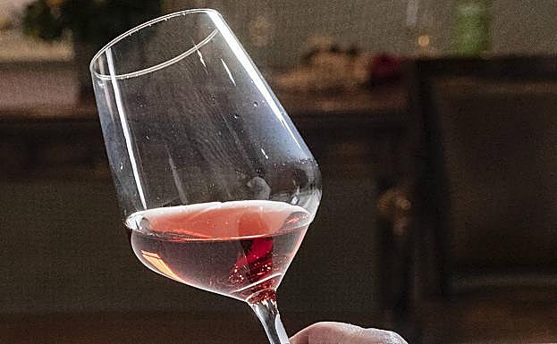 En este caso prueban un rosado aportado por la Denominación de Origen Cigales. Se trata de una de las referencias más llamativas a los ojos por lo bello de la gama cromática que abarcan y el brillo que alcanzan a la luz, según resaltó Pablo Martín, quien también indicó que lo ideal es servirlo a una temperatura de entre seis y ocho grados.
