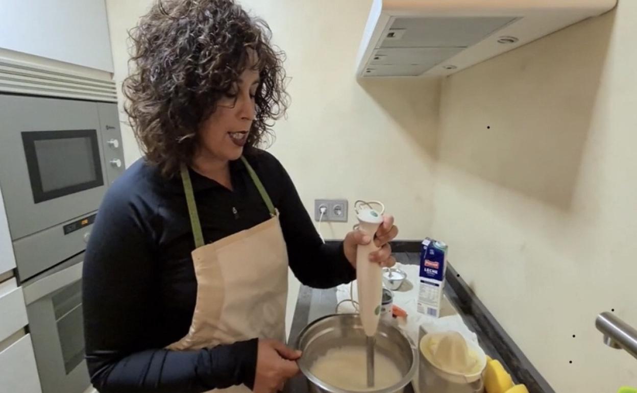 El primer paso es exprimir el limón, e incorporamos a un bol para hacer la masa. A partir de ahí, se añaden los yogures preferentemente griegos, la leche condensada, la leche entera y azúcar a gusto del consumidor. Una vez terminado, se bate y el postre está prácticamente finalizado. «La gracia es servirlo muy frío y por eso tiene que estar en la nevera cuatro horas, y así coge además la textura de crema que nos gusta», detalla María.