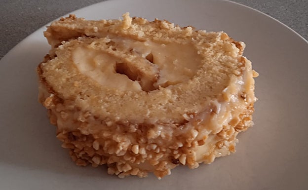 Cuando esté fría y con con cuidado se va enrollando con el paño hasta hacer un rulo y se dejará enfriar de nuevo. La última parte, será el relleno. Se desenrolla el bizcocho y se rellena con la crema. De nuevo, con tranquilidad se enrolla y solamente quedará decorar. Se puede aprovechar la crema pastelera que haya sobrado para pintarlo y añadir unas almendras picadas por encima. Se dejará en la nevera y estará bien fresquito en el momento del postre.
