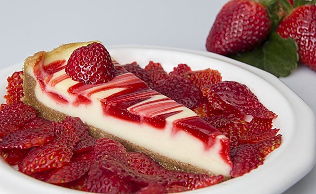 Y no falta por su puesto, una estupenda tarta o pastel de queso con fresas. Se puede utilizar un molde con forma de corazón o jugar con la decoración y las fresas. La base se elabora con los ingredientes habituales, se mezclan en un bol los ingredientes, el queso crema, la nata, un par de huevos, azúcar y harina. La mezcla se vierte en un molde que previamente habremos untado con un poco de mantequilla para evitar que se pegue el pastel y se hornea durante casi una hora a 180 grados. Después se deja enfriar para desmoldar y se guarda en la nevera. Por otro lado, para la decoración se caramelizan unas fresas cortadas en rodajas en una sartén con un poco de azúcar y se decora el tarta antes de servir.