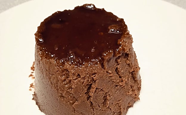 A continuación, se añade al chocolate ya templado y se va añadiendo leche mientras se bate. Antes de echar la mezcla en los moldes individuales se añade un poco de caramelo en la base. Después, se hornearán al baño María unos cuarenta o cincuenta minutos. El agua tiene que llegar a la mitad de las flaneras y para que no se queme la parte superior se cubren con un poco de papel de aluminio. Una vez hechos se dejarán enfriar y se desmoldan para servir.