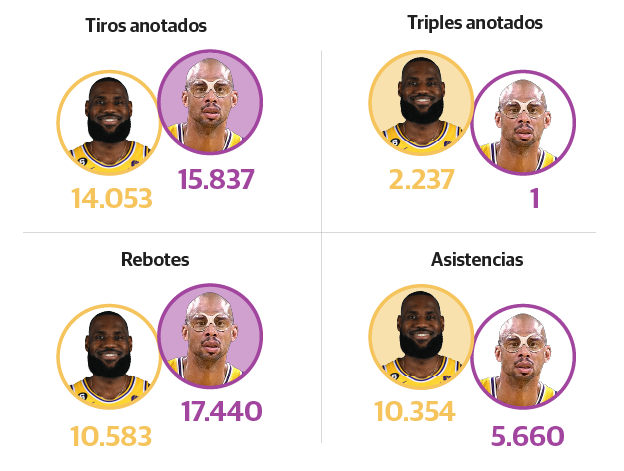 Aquel prodigio físico capaz de arrancar los aros de cuajo de no fabricarse ahora con esas elasticidades propias de la goma puede dañar a los oponentes en penetraciones salvajes, asistiendo a sus compañeros más liberados por los sobremarcajes que él recibe y también mediante ese tiro de larga distancia cuyo rango ha ampliado con el tiempo. Esos triples casi desconocidos en el repertorio del sucedido Abdul-Jabbar, quien solo coló uno a lo largo de su prolífica carrera. Es tal el catálogo de virtudes en James que puede alzarse como un auténtico muro de hormigón armado en defensa. Y para quienes reducen su poderío a un físico descomunal cabe añadir un dato muy aclaratorio. Acaba de superar a Steve Nash y Mark Jackson -dos bases puros- en la tabla histórica de asistentes. Sólo le preceden en esa lista otros tres directores de juego: John Stockton, Jason Kidd y Chris Paul. 'El Rey' LeBron sigue devorando récords a dentelladas.
