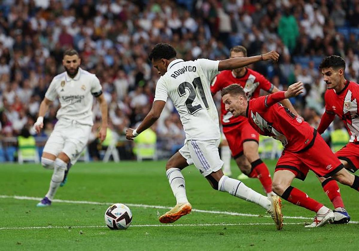 Rodrygo Goes, durante el partido contra el Rayo Vallecano en el Bernabéu. AFP