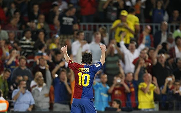 Entre la temporada 2008-09 y la 2009-10 Messi alcanza su mejor nivel para guiar al Barça al primer triplete Champions-Liga-Copa de su historia, al que añade el Mundial de Clubes y las Supercopas de Europa y España, es decir, todos los títulos posibles en un año natural.