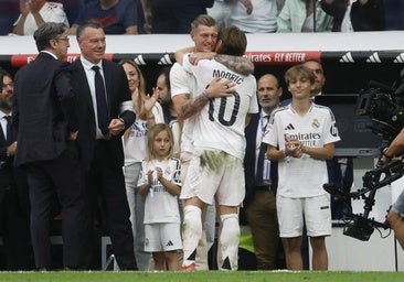 El homenaje del Bernabéu a dos leyendas se alargó más allá del partido. Tras el pitido final, y como si se tratase de una de tantas celebraciones por la conquista de la Champions que han vivido en el pasado, Ancelotti y Modric se dirigieron desde el círculo central a una parroquia rendida a los suyos.