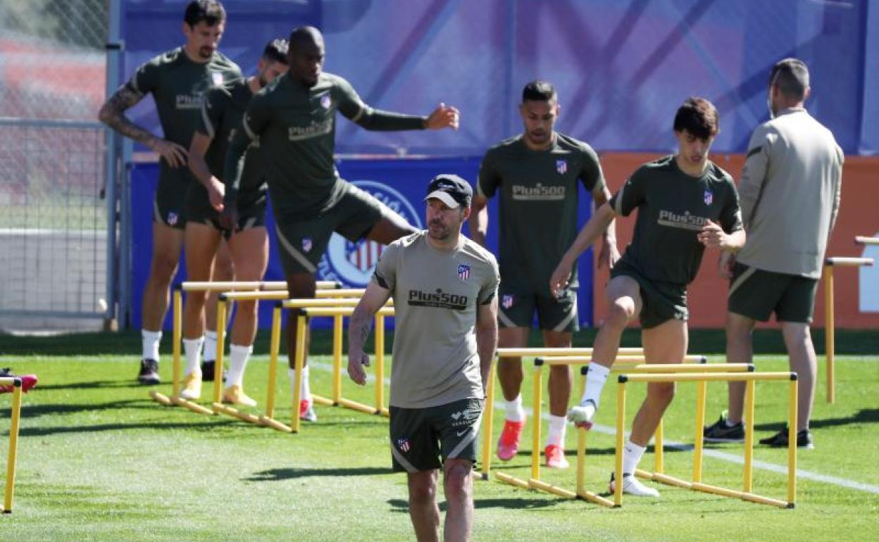 Simeone, durante una sesión de entrenamiento del Atlético en el Cerro del Espino. reuters