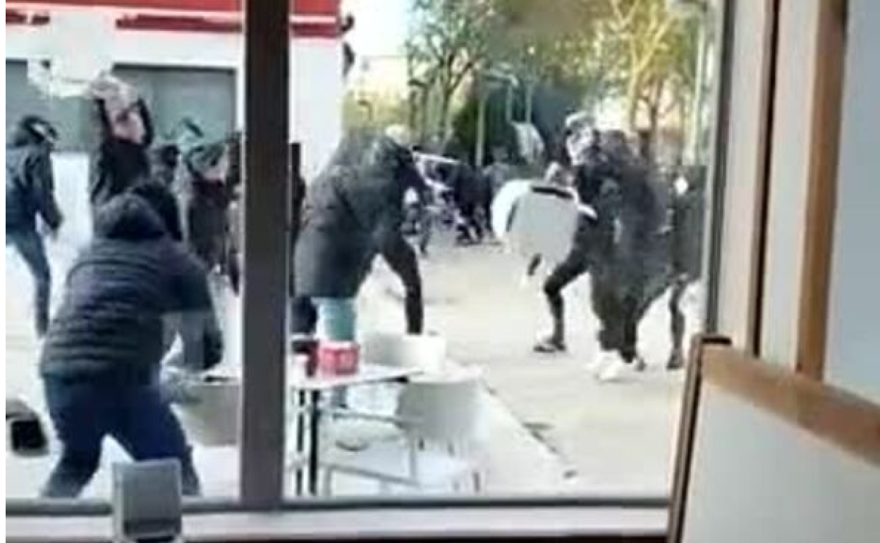 Vista desde un bar de la pelea entre aficionados del Real Zaragoza y del Burgos. RC