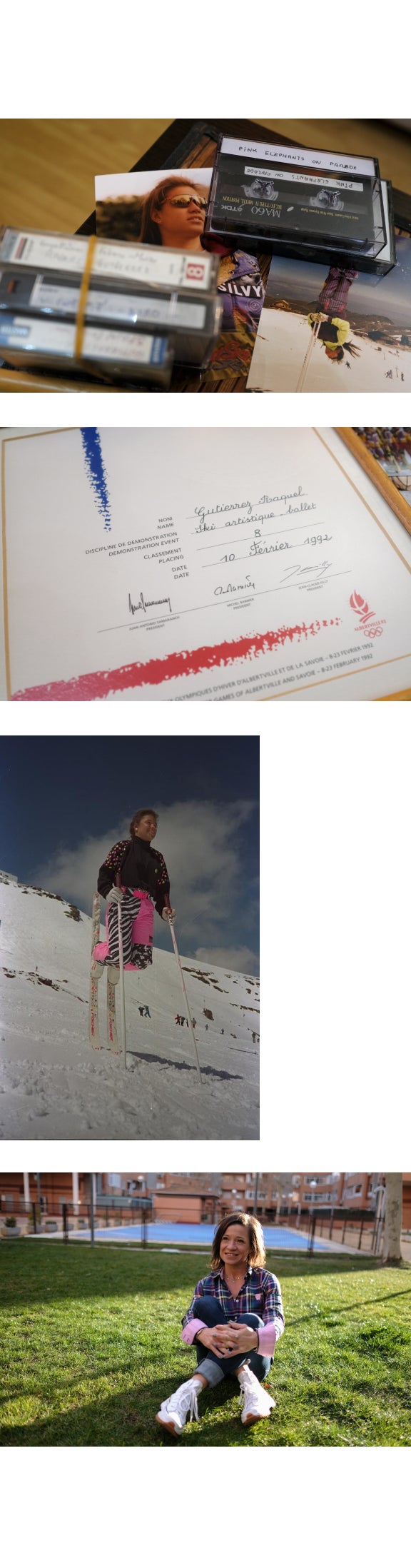 En el vídeo anterior suena 'Pink Elephants on Parade', la canción de la película Dumbo con la que Raquel, que se enfundó en unos pantalones amarillos con brillantes que todavía conserva, inauguró la pista de la final de ballet en los Juegos de Albertville un 10 de febrero de 1992. Llevaba el número 1 a la espalda y empezó muy nerviosa. Al final fue octava, pero salió «contentísima». Guarda enmarcado su diploma, con la antorcha olímpica que tiene de recuerdo, el muñeco de Magique, la mascota oficial, y una caja repleta de recuerdos de aquella época.